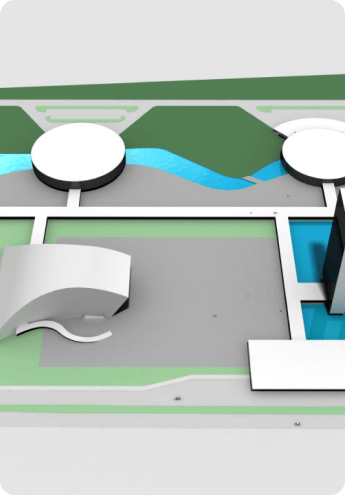 Abarcando exposições de arte, espetáculos de música, teatro, dança e cinema, além de restaurantes, o conjunto é constituído por quatro edifícios: uma cúpula circular, um auditório, um pavilhão curvo – que inclui um centro cinematográfico, e uma torre mirante que abriga o restaurante, referência de verticalidade no conjunto.
